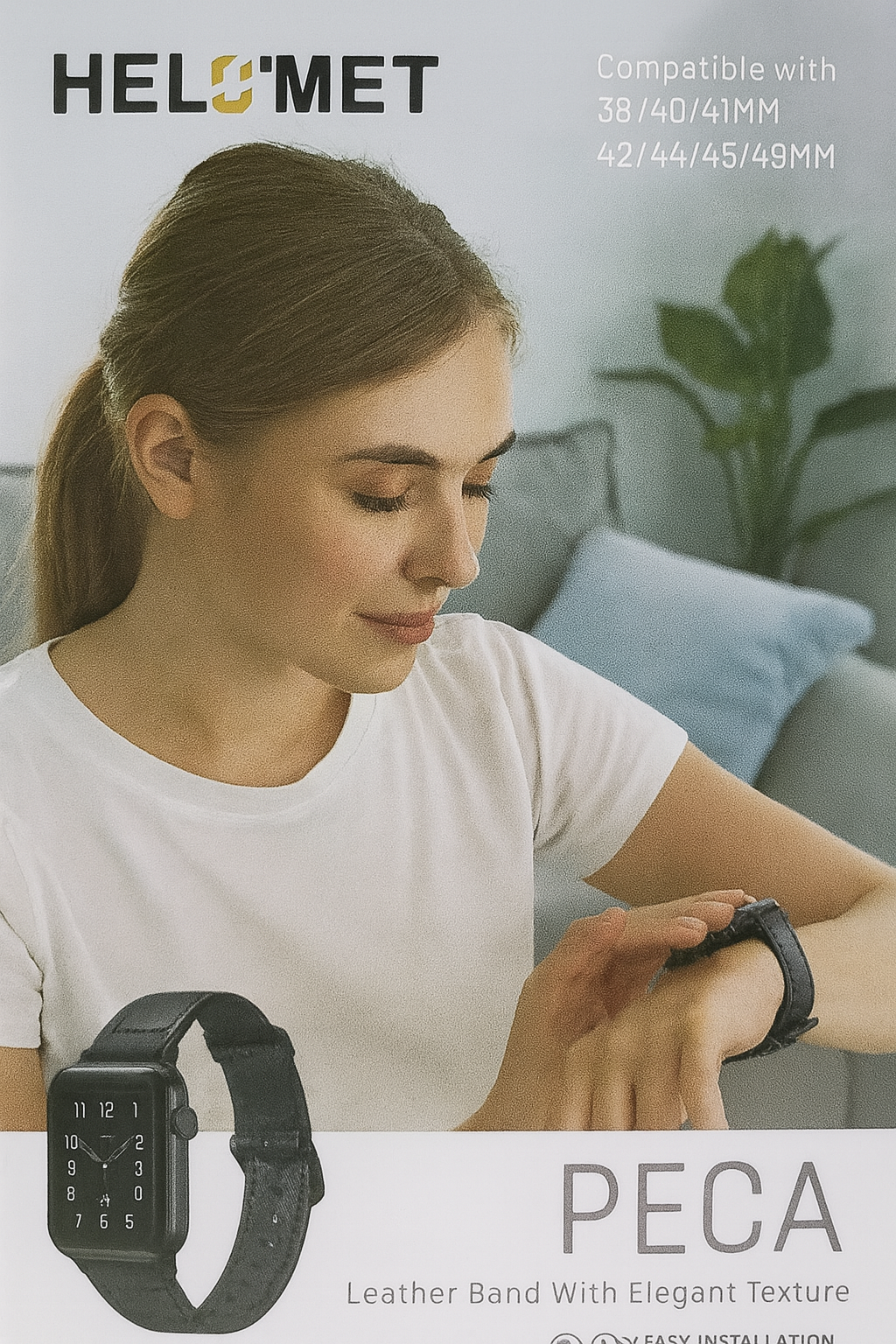 سوار ساعة من الجلد من نوع HELMET PECA – حزام جلدي أنيق ومريح متوافق مع ساعة أبل، مصمم للاستخدام اليومي مع ملمس فاخر وملاءمة موثوقة.