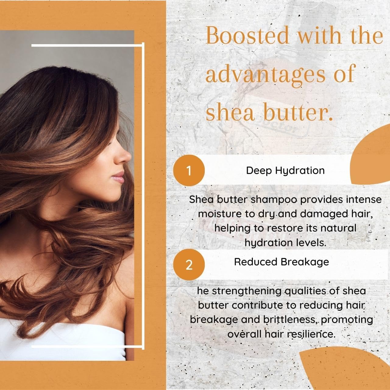 ✔ مع زبدة الشيا (كما هو موضح على الملصق) - زبدة الشيا غنية بالفيتامينات والأحماض الدهنية، فهي تغذي الشعر بعمق وتعيد إليه صحته.