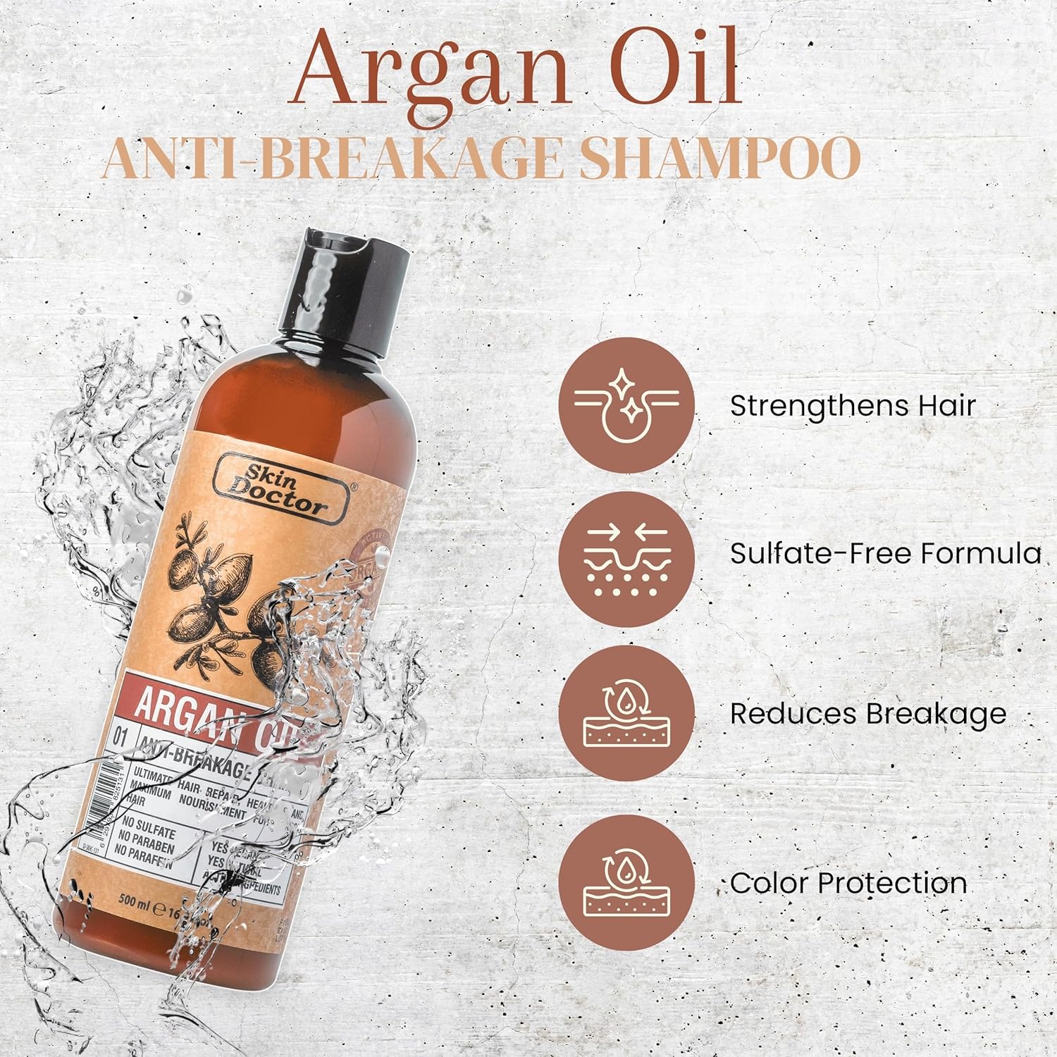 Skin Doctor Argan Oil Anti-Breakage Shampoo – A nourishing formula enriched with natural argan oil to repair damaged hair, reduce breakage, and provide maximum nourishment, especially for coarse hair.